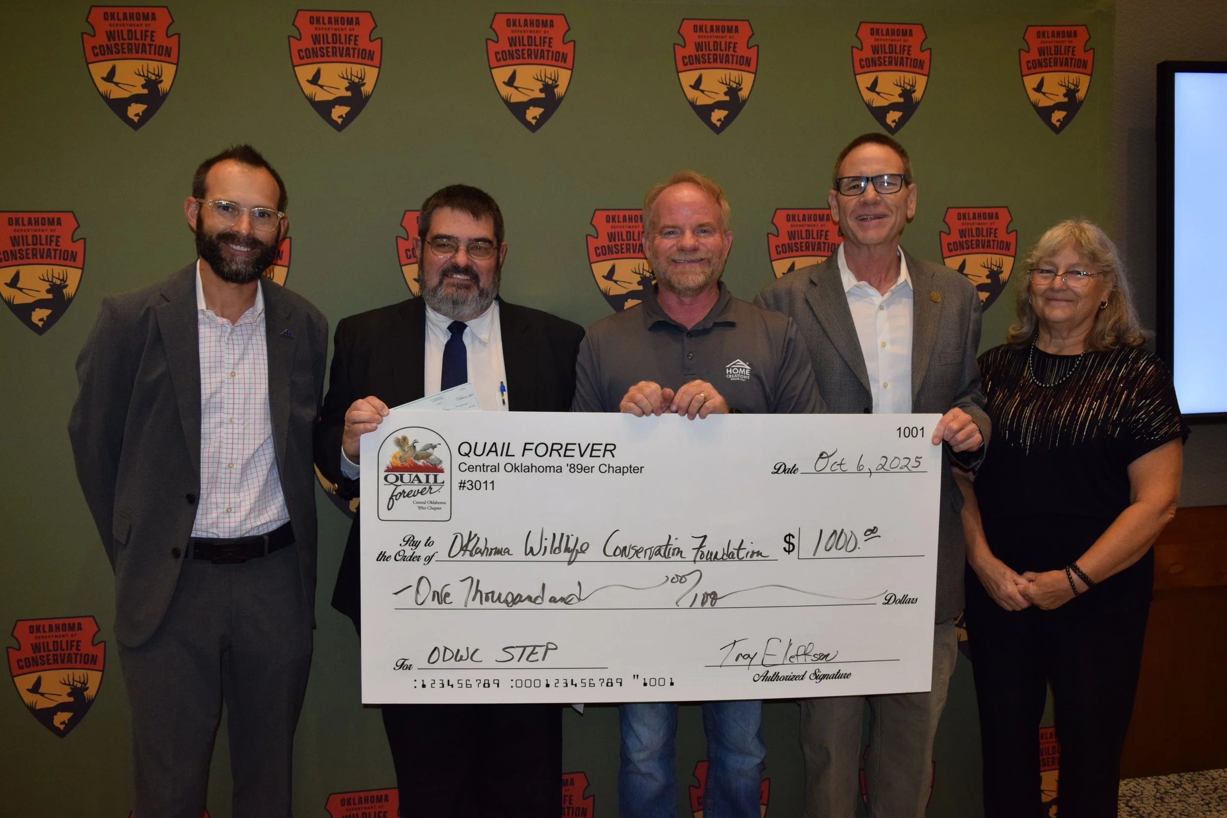 Central Oklahoma Quail Forever Chapter with another donation to ODWC for habitat improvements in Oklahoma.